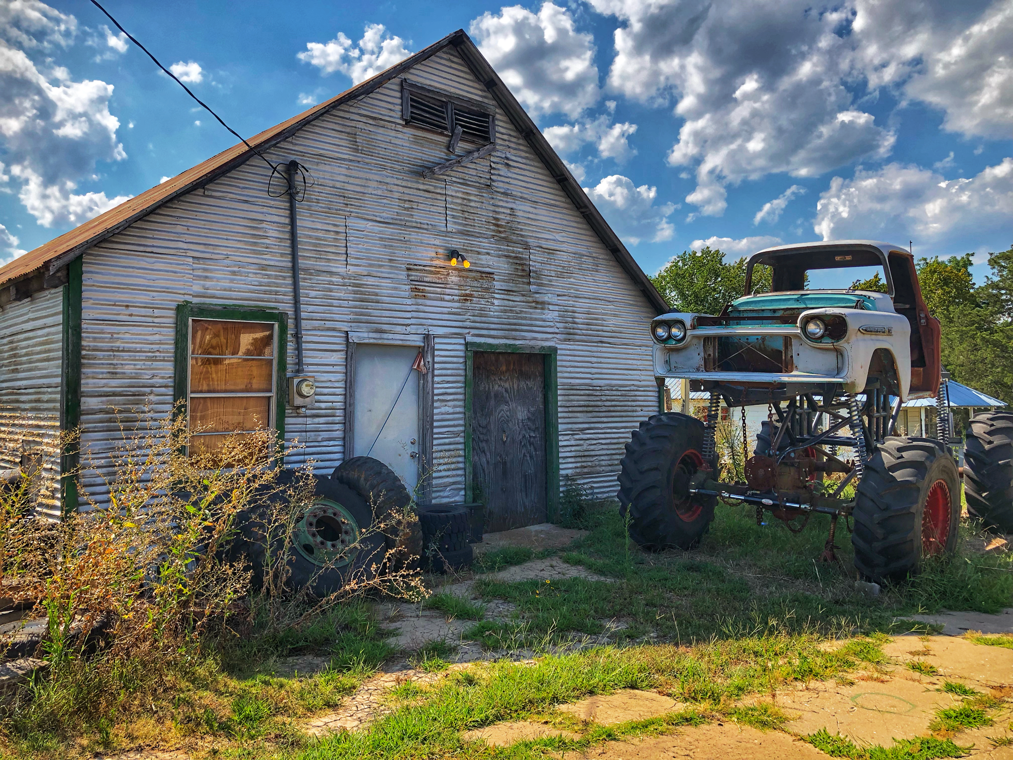 Next, I set my GPS to a spot that I hadn’t seen in years, since years before I had a decent camera or SmartPhone. The Wanette-Byars Bridge. This gorgeous truss bridge crosses the Candian River, and connects the towns of Wanette and Byars, both of which are worth visiting in their own right if you enjoy photography and “lost Americana”. Formerly a rail bridge, the one-lane bridge is now utilized by cars. It’s one of my favorite bridges in Oklahoma, and I was thrilled to get back to it. On this visit, I had the added experience of seeing a gaggle of ATVs and one giant monster truck playing in the river below.